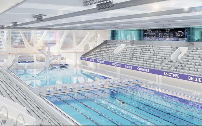 В спорткомплексе «Олимпийский» после реконструкции откроется аквапарк, 15 бассейнов, спортивные и концертные залы, беговая дорожка длиной 1 км.