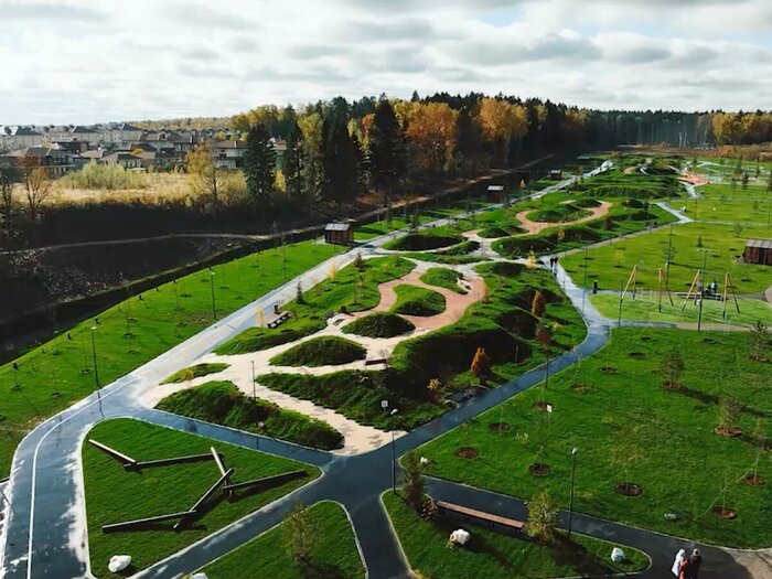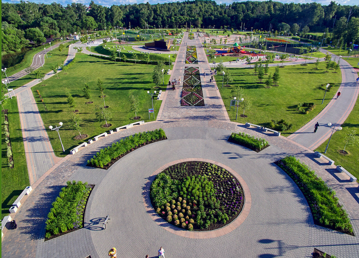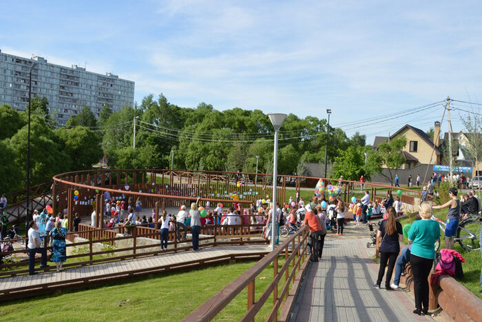 При проектировании этого парка в Новой Москве за основу была взята концепция создания прогулочно-фестивальной зоны, которая бы стала идеальным местом для активного отдыха и проведения культурно-массовых мероприятий. Здесь активные зоны сочетаются с тихими и предназначенными для спокойного отдыха. Для прогулок предусмотрены комфортные дорожки, для занятий спортом — оборудованные площадки.