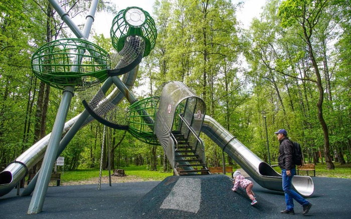 Любители активного отдыха найдут в парке площадки для ворк-аута, памп-трек, столы для настольного тенниса и велодорожки.