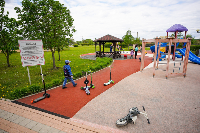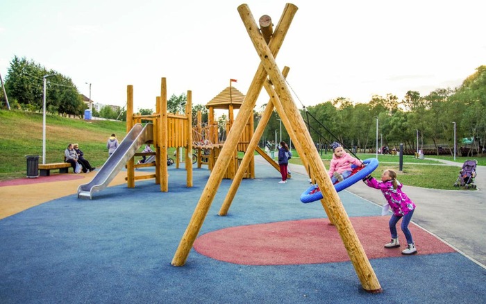 Для ребятишек разных возрастов обустроили детские площадки с игровыми комплексами. Есть футбольное поле, скейт-парк, площадки для фитнеса и воркаута.