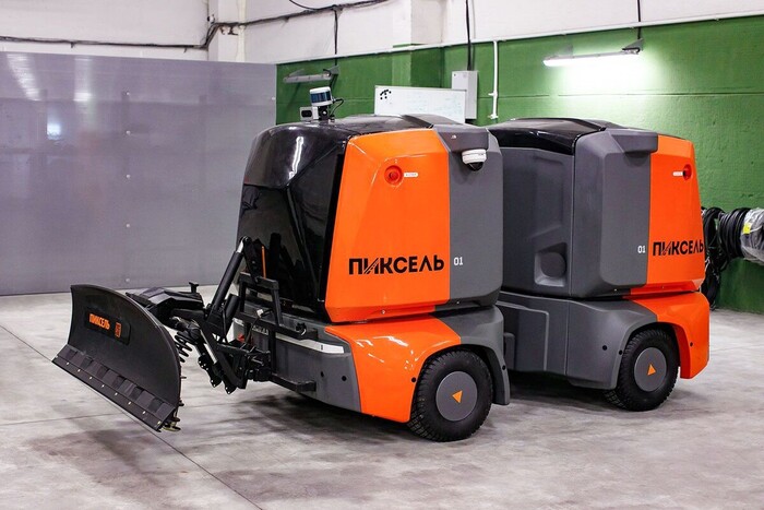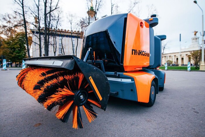 Яркие футуристические машинки катятся по дорогам со своим инвентарем. Зимой они счищают снег специальными лопатами, а в теплое время года заметают листву щетками или моют асфальт.