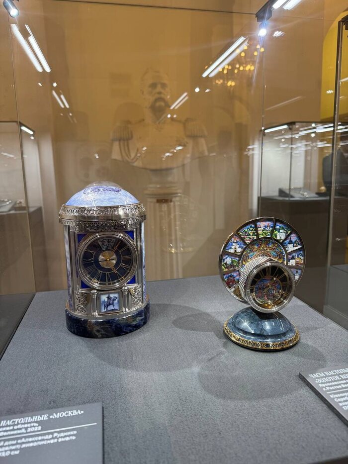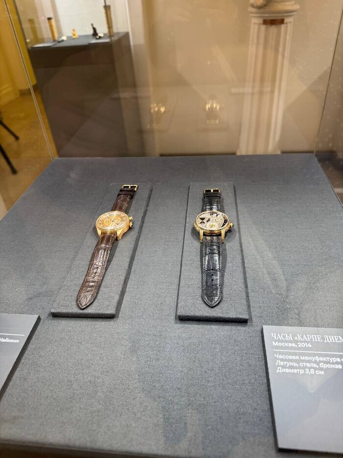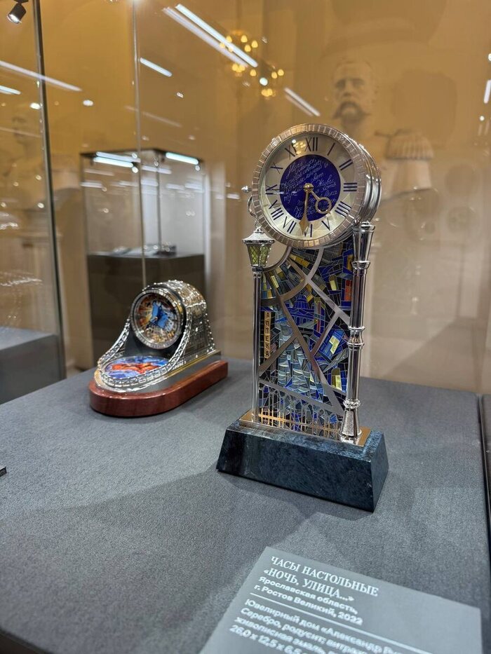 Еще один раздел посвящен часам. В нем можно увидеть работы Константина Чайкина, создавшего самые тонкие часы в мире, и Александра Рудника, известного своими эмалевыми работами.ю