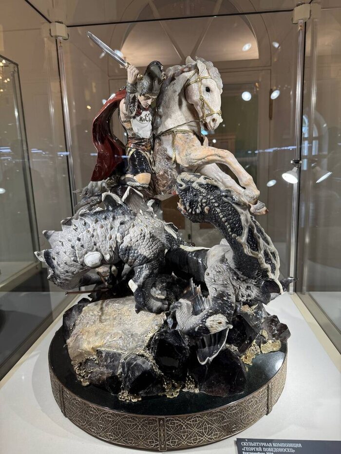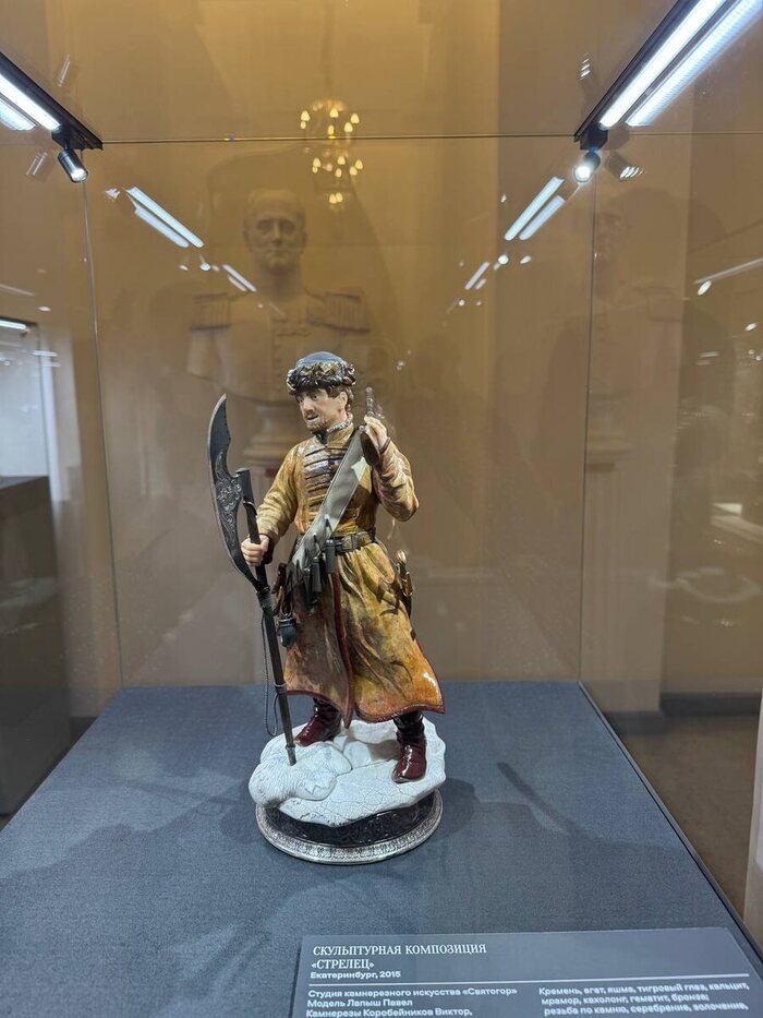 Представлены в экспозиции и образцы камнерезного искусства: предметы, выполненные в традициях мастеров уральской школы и посвященные истории и фольклору России.