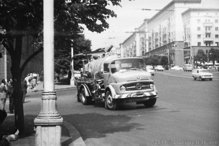 Уже в те годы в Москве вполне реально было встретить коммунальную технику с трёхлучевой звездой. На фото - Mercedes Kurzhauber, а снимок сделан на улице Горького (современная Тверская).