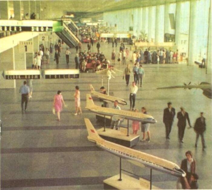 Ну что, кажется пришла пора финального снимка? Давайте полюбуемся интерьерами московского аэровокзала, что располагался на Ленинградском проспекте. Если вы не совсем понимаете, как была устроена система доставки пассажиров, то вот вам комментарий от человека, который им частенько пользовался: