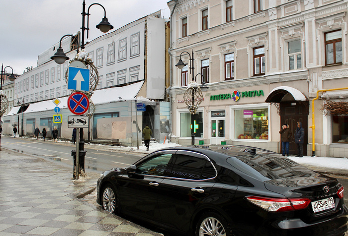 Дом слева снесли ещё лет двадцать назад, там, вроде, только фрагменты фасада сохранились, но после сноса стройка была заморожена