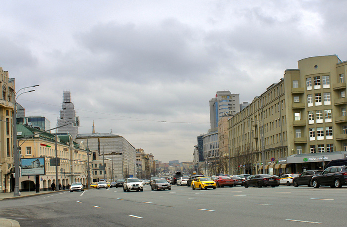 Это вид от улицы Чехова, ныне Малой Дмитровки, на самый современный по тем временам кинотеатр "Россия". Фото 1961 года