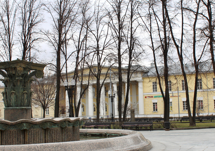 В сквере позже был установлен фонтан, а в остальном всё также, только деревья уже взрослые