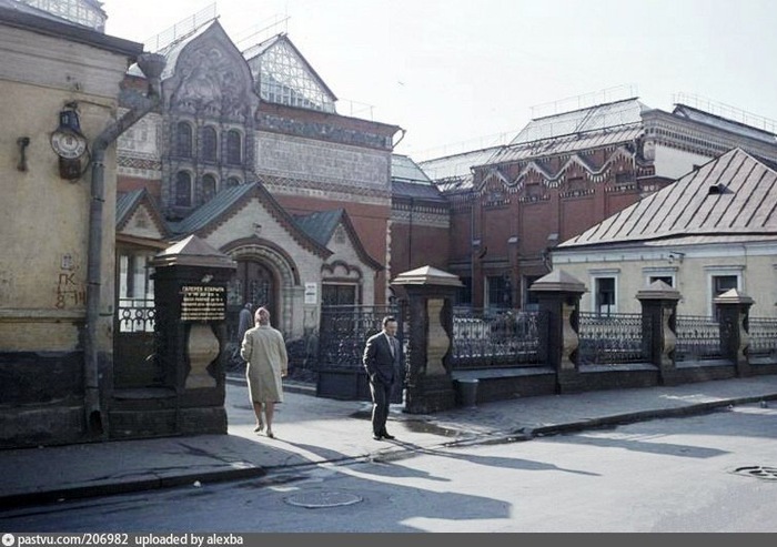 Переместимся в Замоскворечье. На фото знаменитая Третьяковская галерея. Обратите внимание на фрагмент дома слева на переднем плане. Фото 1965 года, Хеллмут Мюнцнер