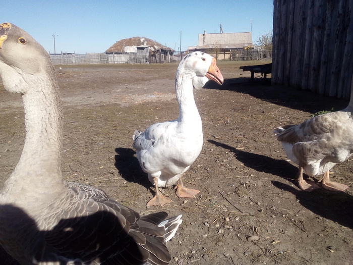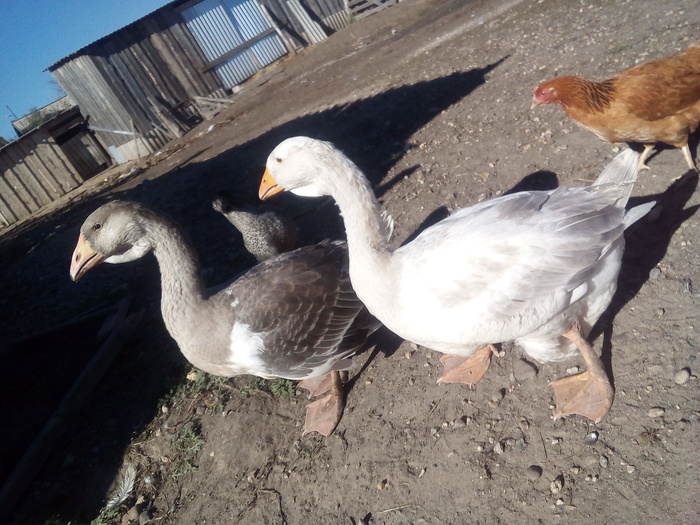 Ну,а теперь перейдем к ним самым.....гусь жаловался на гуся. Степан успокоился и перестал нападать из-за спины, теперь он сразу нападает. И вот тут не понятно, то ли с обнимашками и радостью лезет, то ли набрался всякой гадости у петухов и теперь быдлячит.
