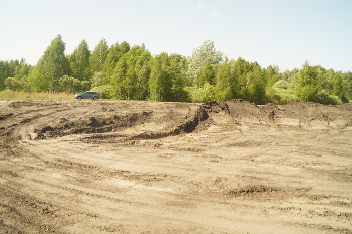 А за неделю почти с 1 га сняли плодородный слой, частично вывезли, частично сгребли в кучи. В общем, примерно вот такой ландшафт:
