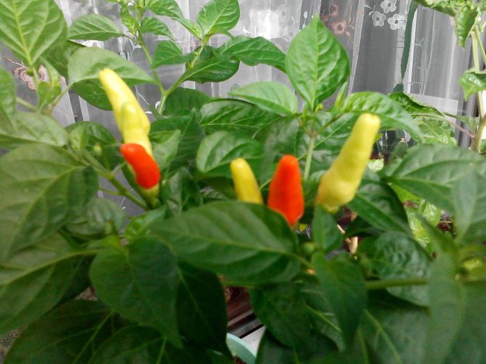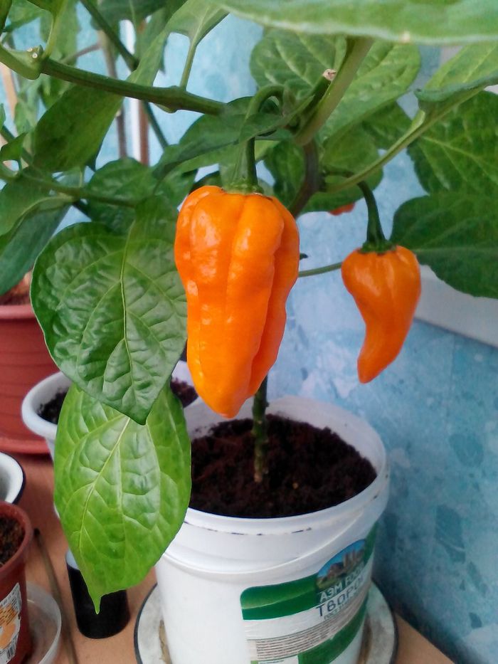 Самый простой и до безобразия не прихотливый оказался Aji Melocoton. Без проблем отдал плоды находясь в пивном стакане 0,5л. Перец острый, но спорно. Если кусать живьем - опаляет не на шутку, в блюдах уже сильно теряет остроту, в молотом виде очень легко передозировать и получить несъедобное блюдо. Самый лучший вариант использования, для меня, оказалось его замасливание - то есть, рубим перец, штук 10-20 стручков и заливаем растительным маслом, но не сильно, что бы еле-еле покрыть перец и оставляем хотя бы дня на 3 в холодильнике. Потом это масло можно капать в суп, в пельмени, на колбасу в бутерброде, эффект приятной обволакивающей остроты без излишеств. У самого перца запах приятный, не резкий, то ли персик, то ли стручок гороха, сложно выделить акцент. Куст высокий, раскидистый, урожайность низкая, ибо дает всего один стручок на развилку, нуждается в ручном опылении.