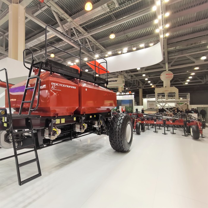 На #АгроСалон2020 ростовский производитель в этом году привез комбинированный посевной комплекс SH - тандем 3х секционного бункера АТ-11 и предпосевного культиватора серии "R" c секцией дисковых сошников позади катков. Бункер АТ имеет механический привод, может быть разделен на 2 или 3 емкости, а максимальный объем достигает почти 14 тысяч литров! Интересный факт: как указано на сайте РСМ, в 1998 году бункера АТ были признаны самыми точными в Канаде, но это не точно, исследование проводилось только в одном штате, а на пороге уже 2021й...