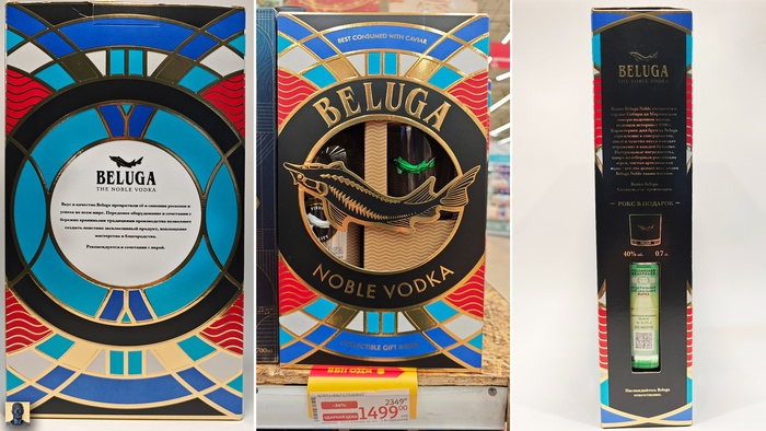 У дядьки моего Василича День рождения случился уже черт знает какой по счету и взял ему вот такой подарочный комплект от Белуги. У нас он самый опытный водочный сомелье в семейном кругу. До этого дарил другое, а тут что-то решил взять Белугу. Как выглядит на фото ниже и цена там же. Продается во многих местах, выглядит красиво, и брал по акции.