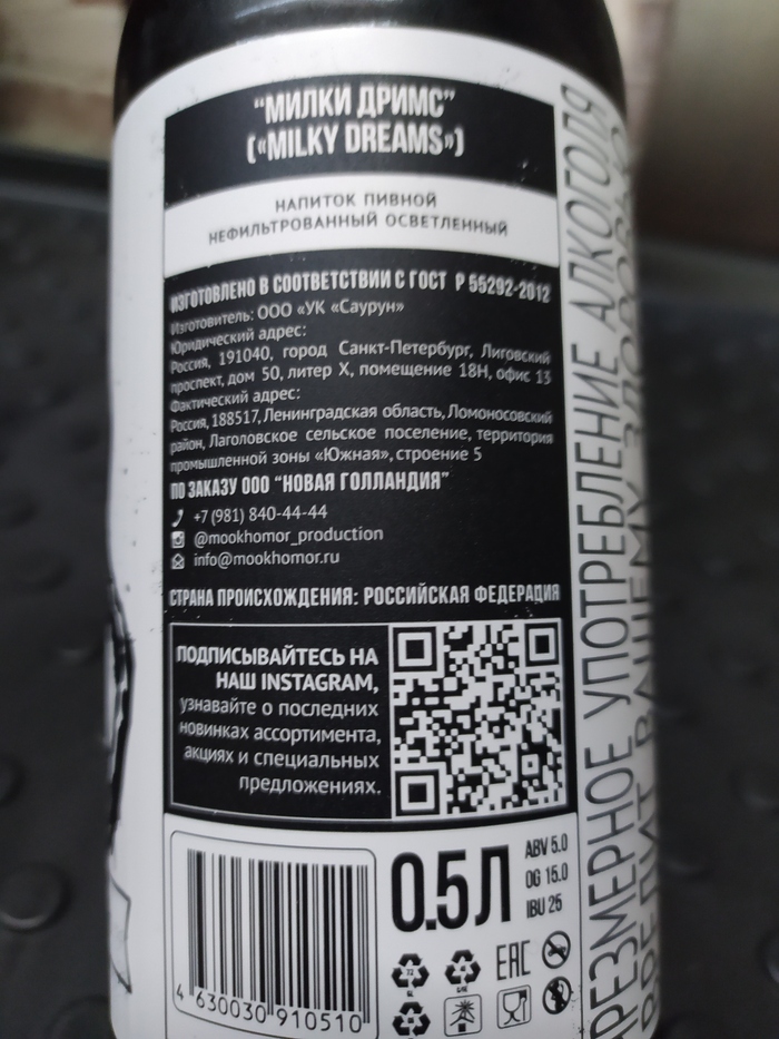 Объём 0,5 литра, алкоголь/ABV 5,0%об., сусло/плотность/OG 15%, горечь/IBU 25.