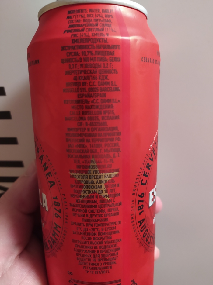Обьем 0,5л., алкоголь 4,6%об., сусло/плотность 10,7%.
