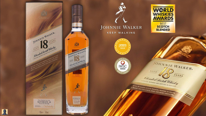 Johnnie Walker 18 Year Old, это купажированный шотландский виски, который представляет собой комбинацию до 18 различных виски, в том числе таких, как Cardhu, Glen Elgin, Auchroisk и Blair Athol. Большинство из них в купаже, а точнее 15, составляют классические односолодовые виски. Каждый из которых выдержан как минимум 18 лет. Создан мастером купажирования Джимом Бевериджем. В целом, его профиль представляет собой смесь нот сливочной ванили, ярких фруктов, меда, а также легкие струйки дыма. Это виски, которому нужно дать подышать.