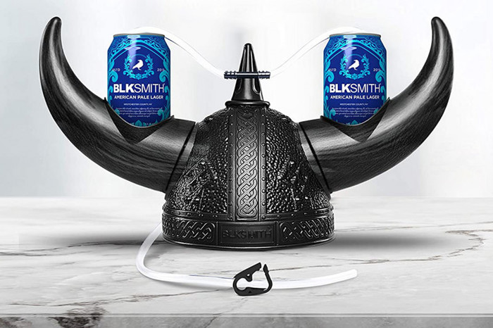 Американская компания BLKSMITH Design усовершенствовала пивной головной убор, придав ему скандинавской брутальности. Шлем Viking Can Holder Helmet работает по принципу каски Джереми Гамбо. Банки с пивом устанавливаются на рога пластикового убора. Внутри шлема есть ремешок, позволяющий подогнать его под размер головы современного викинга.