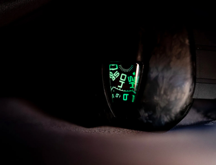 Корпус, похожий то ли на клешню, то ли на плоскогубцы, выполнен из стали, титана и кованого карбона. Последние два материала - прочнее и легче стали. Задняя крышка большей частью прозрачная.