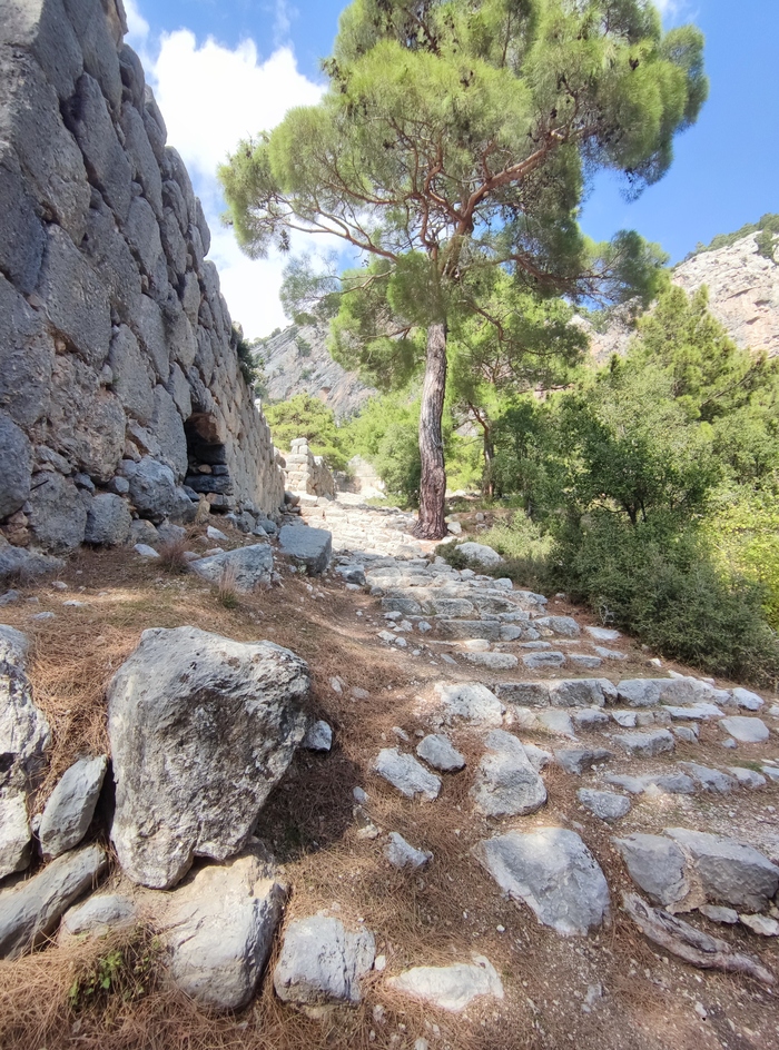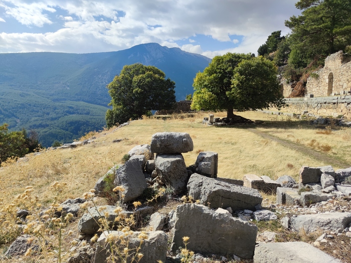 Руины самого города впечатляют своей неплохой сохранностью, особенно амфитеатра, где сквозь каменные сиденья пробилась средиземноморская сосна. Археологи, что занимались раскопками, не стали трогать это величественное дерево и, должен признать, совершенно оправдано.