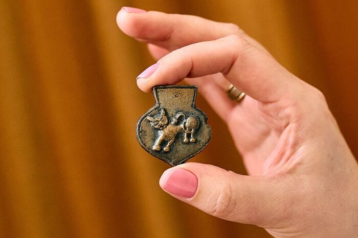 В районе Обыденских переулков обнаружили накладку XVII века. На ней хорошо сохранилось изображение льва. Такие изделия могли использовать для декорирования пояса или сумы.