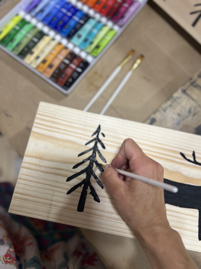 После того как основные элементы были вырезаны, мы приступили к ручной росписи. Каждая линия, каждое движение кистью добавляют живое ощущение к работе. Рисунок становится единственным в своем роде, ведь его мы не повторяем дважды.