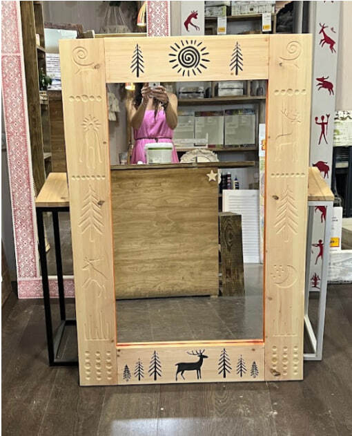 Пожелание клиента: Зеркало должно быть облегченным, поэтому остановились на сосне.