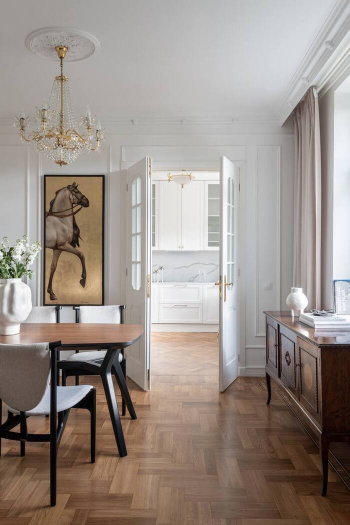 Дизайнеры оформили для молодой активной семьи эклектичный интерьер квартиры с нотками французского шарма.