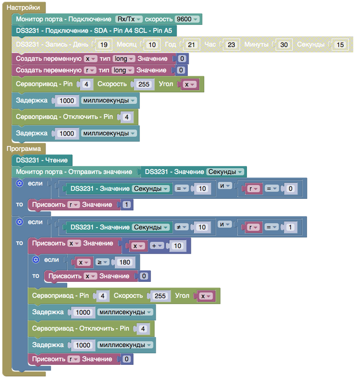 9 DELETED ArduBlock Кормушка для рыбок по времени DS3231 + Arduino + Servo SG90 3 года назад Схема: Программа: Показать полностью 2 [моё] Ardublock Arduino Видео Длиннопост Ещё 0