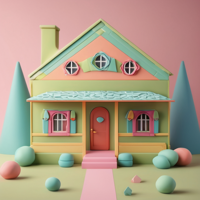 Промт: A cute ОБЪЕКТ made from playdough, simple shapes, designs on a plain background, all facing directly toward the camera