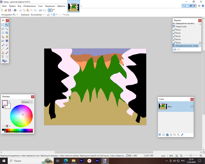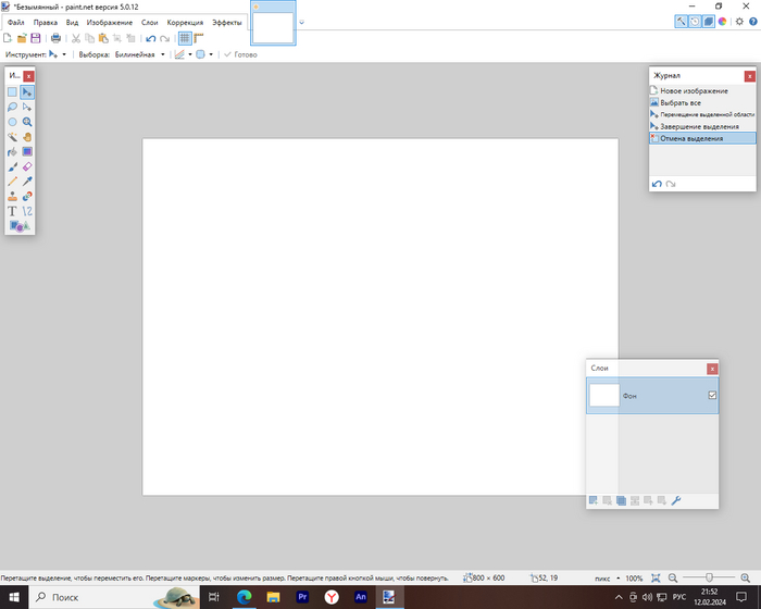 При открытии, по умолчанию создаётся холст 800х600 -- пожалуй, такой и оставлю.