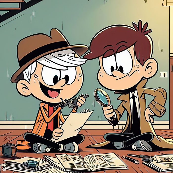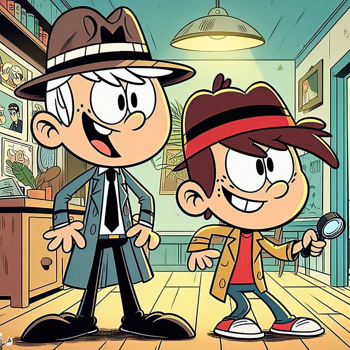 Линкольн Лауд и его друг играют в сыщиков в стиле анимации мультсериала «Мой шумный дом»