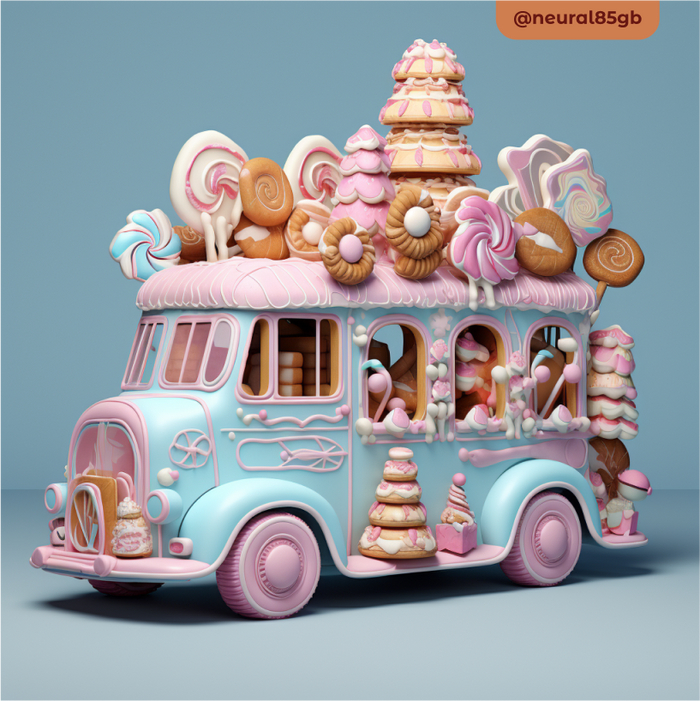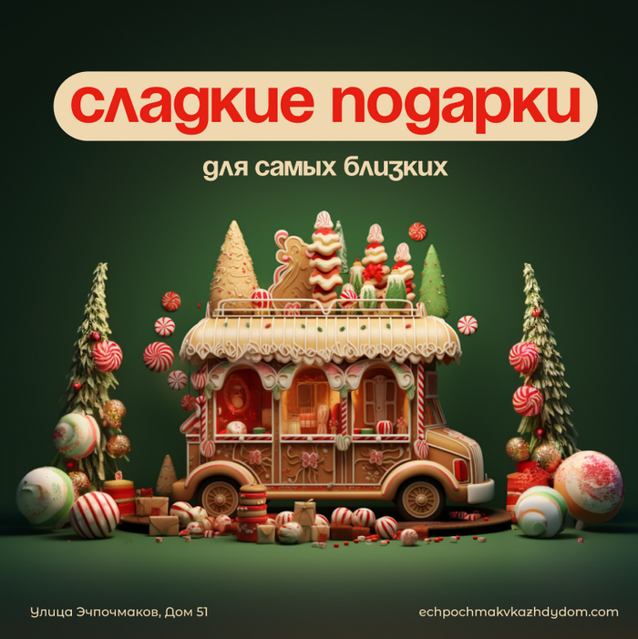 Картинки выше — история, например, домашних кондитеров, а ниже — больших кондитерских. Такие штуки могут быть на сайте, в соцсетках и в рекламе (я постоянно вижу баннерочки с нейросетевыми изображениями всего). В конце поста как раз пример такого баннерочка.