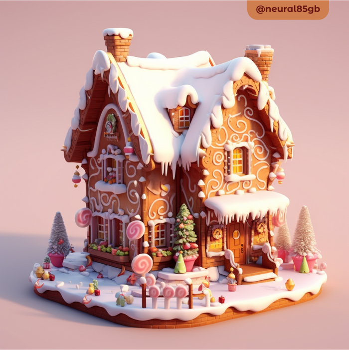 3 и 4. 3d render, Christmas gingerbread [объект], decorated with candies and icing, isometric, Blender, clear bg, realistic use of light and color, saturation gradient, best details, high resolution