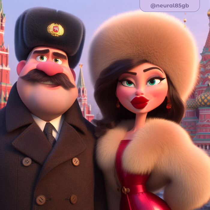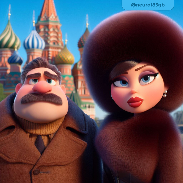 Решила сделать девчонок в стиле Пиксар, для этого пришлось пойти к Далли и господи, как он чувствует! Меня поражает умение видеть контекст, Миджорни обычно таким не страдает. Кстати, бимбо — запрещённое слово у нейронок, так что пришлось описывать по простому.