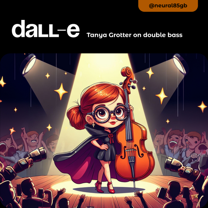 И ещё прикол: если дать Миджорни просто имя Тани Гроттер, то она не поймёт, о чём речь. Но при внесении контекста в виде контрабаса она шарит, что мне нужна кучерявая девушка (делает с рыжими и каштановыми волосами). Генерит при этом почему-то фотки.