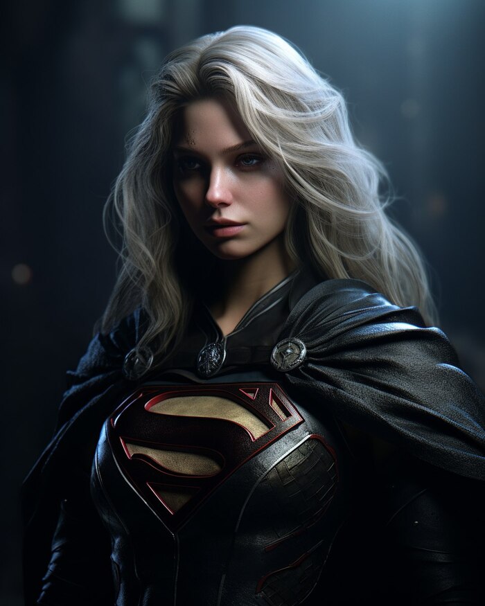 fantasy assassin rogue Supergirl with caped Girl, full body portrait, detailed on her figure, darksouls, realistic fantasy, epic light, symetrical eyes, detailed eyes, textured eyes, realistic, 4k resolution, photo image quality, Canon Camera Quality, realistic, cinematic, cinematic colorgrading --ar 4:5
