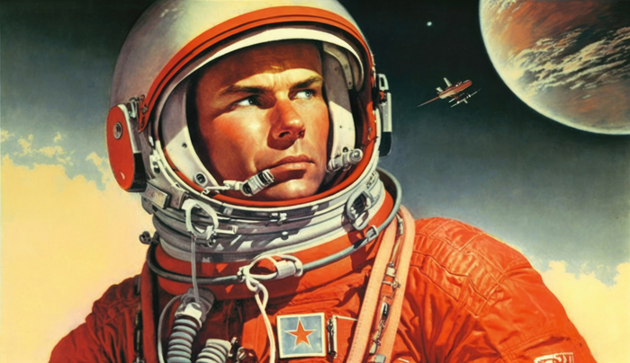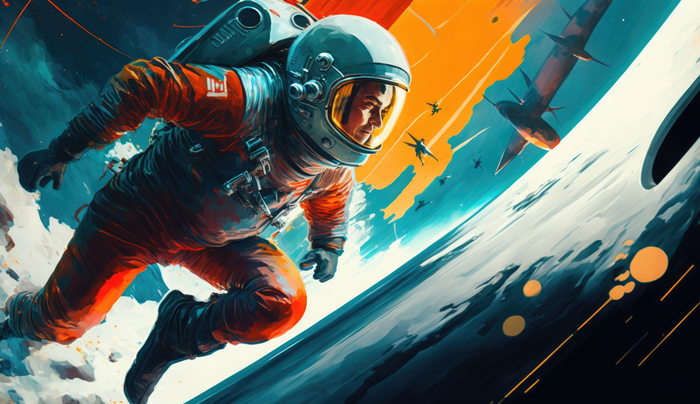 Здесь я постарался получить результат таким, чтобы отражение рядом с космонавтом было похоже одновременно на шлем скафандра, и на планету Земля, и фазу убывающей Луны.