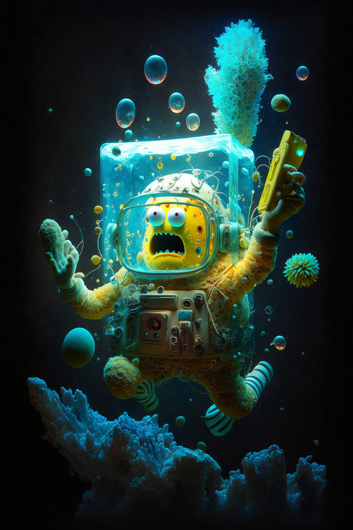 За основу промта были взяты спанчбоб в костюме космонавта. Один раз реролил и вроде пару раз вариативности добавил. Б*я, теперь это мое тотемное животное :)