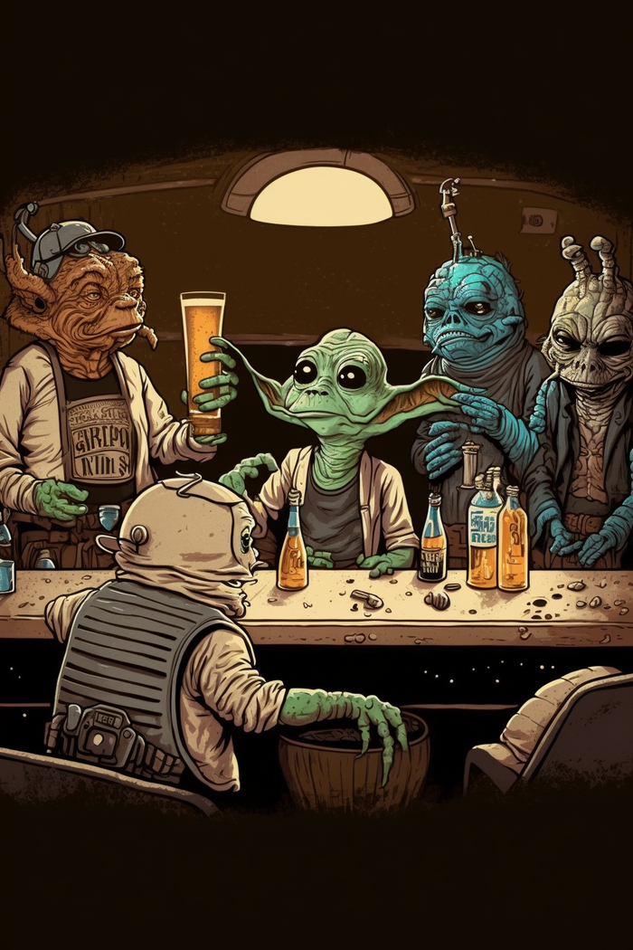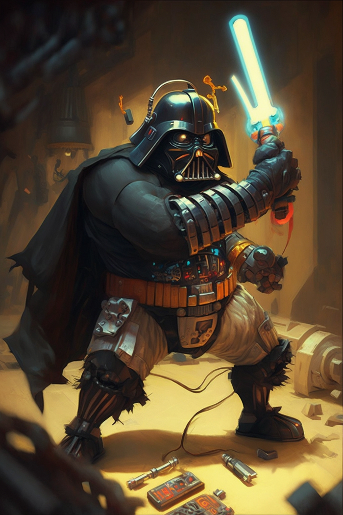 Midjourney интересно справилась с данной задачей, раскладывая вещи из известных вселенных.