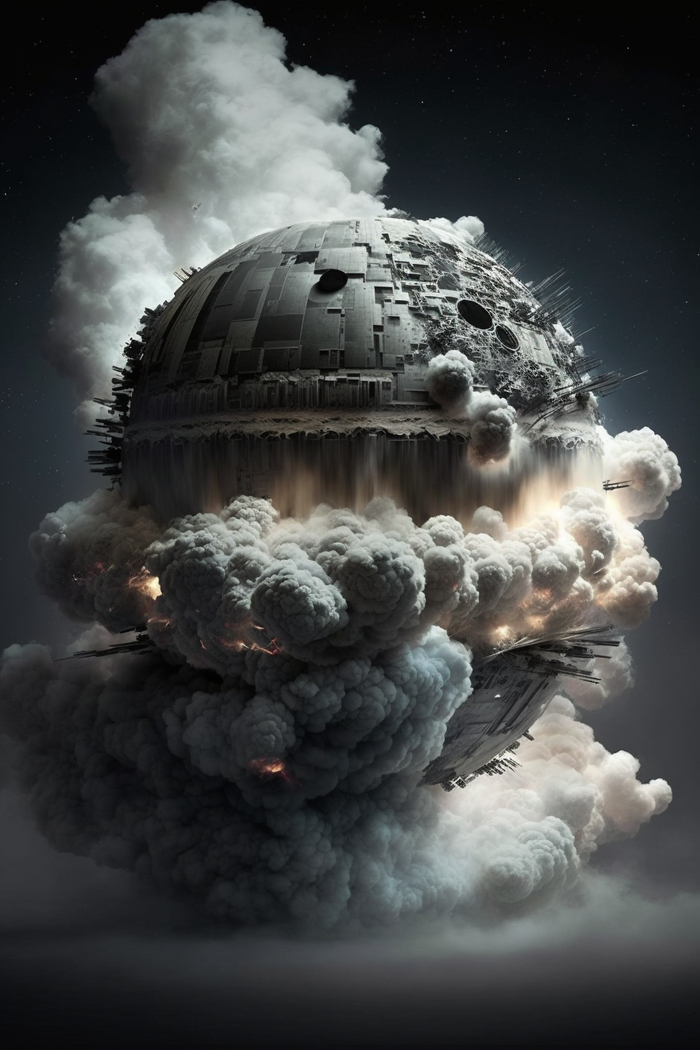 A humorous depiction of the Death Star as a literal "death fart," a massive, flatulent cloud of gas and debris that threatens to destroy everything in its path.
