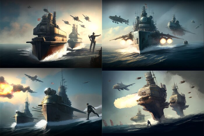 Тогда я скормил ИИ один из постеров к игре HighFleet в качестве референса (изображение 2):
