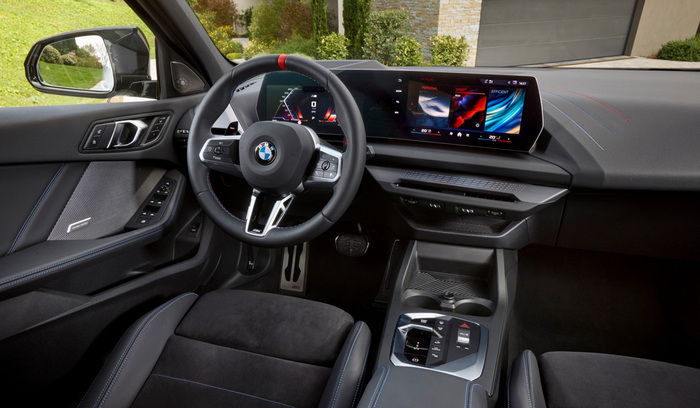 Интерьер «единички» тоже переделан. Передняя панель, как и у старших моделей, теперь с единым блоком, который включает приборный экран (10,25 дюйма) и дисплей медиасистемы (10,7 дюйма). Последняя работает под управлением современной оболочки BMW OS 9 с меню быстрого доступа и возможностью установки сторонних приложений. При этом количество кнопок и рукояток значительно сократилось.