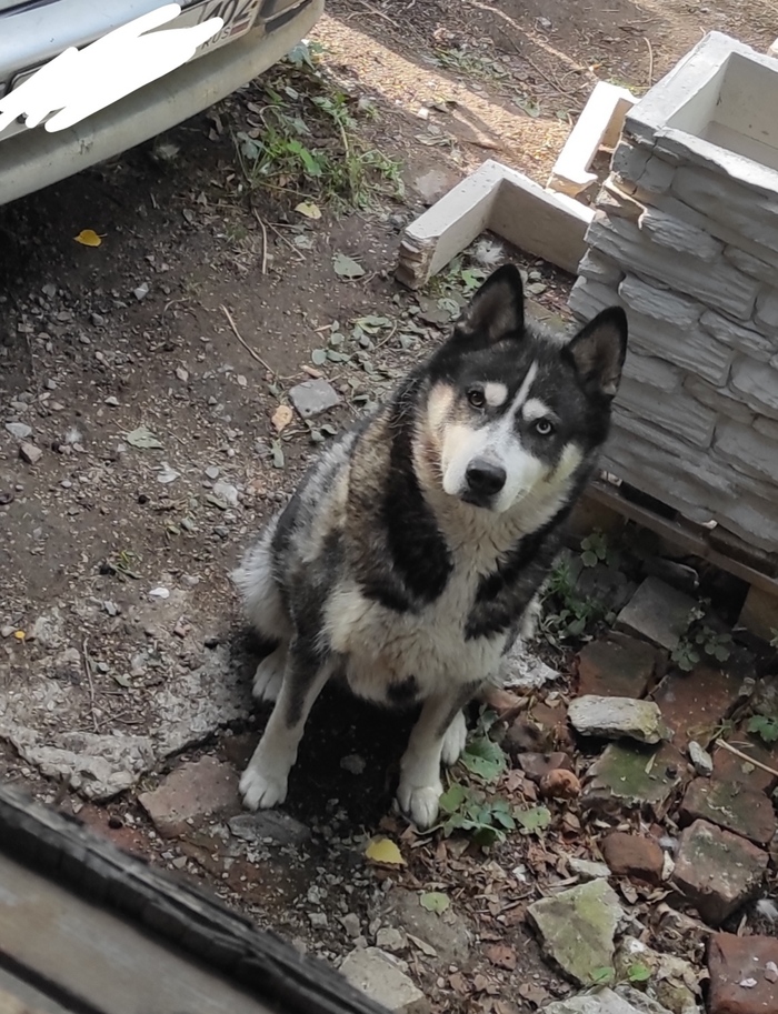 Папа потом рассказал, что когда хозяин дома, пёс всегда с ним, бегает, иногда подвывает тихонько. А когда хозяина нет - частенько вот так сидит наблюдает, видимо за котами, а тут и мне досталось его внимание.