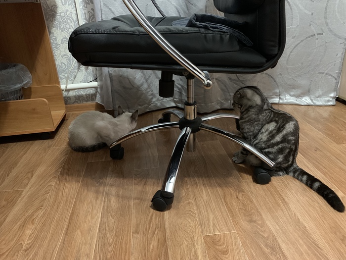 Тогда приступил к выдворению, вытаскивает кошаков за шкирку по одному с тёплого места. Дохлый номер. Замучился. Одну вытащит, берётся за другую, первая снова тут,кошачья круговерть. Жалко мне его стало, выгнала наглых котеек по месту проживания.