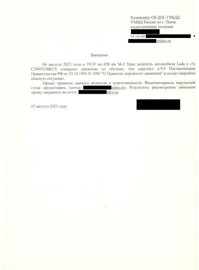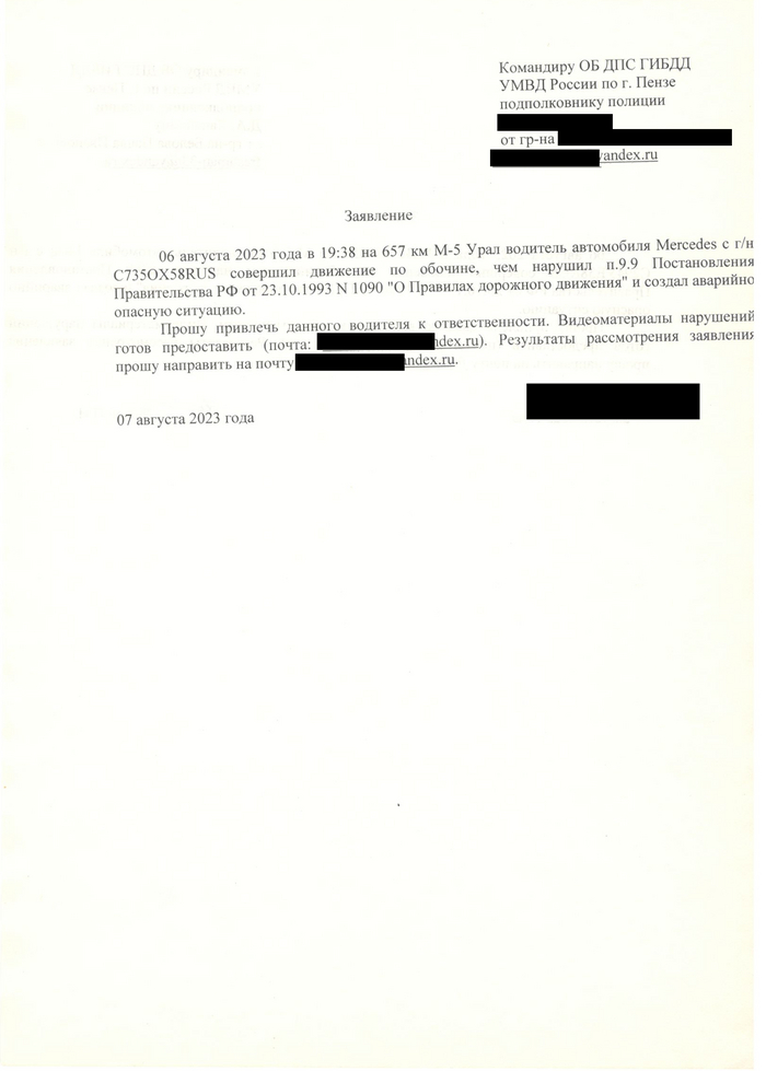 P.S. Призываю всех заявлять на нарушителей ПДД.