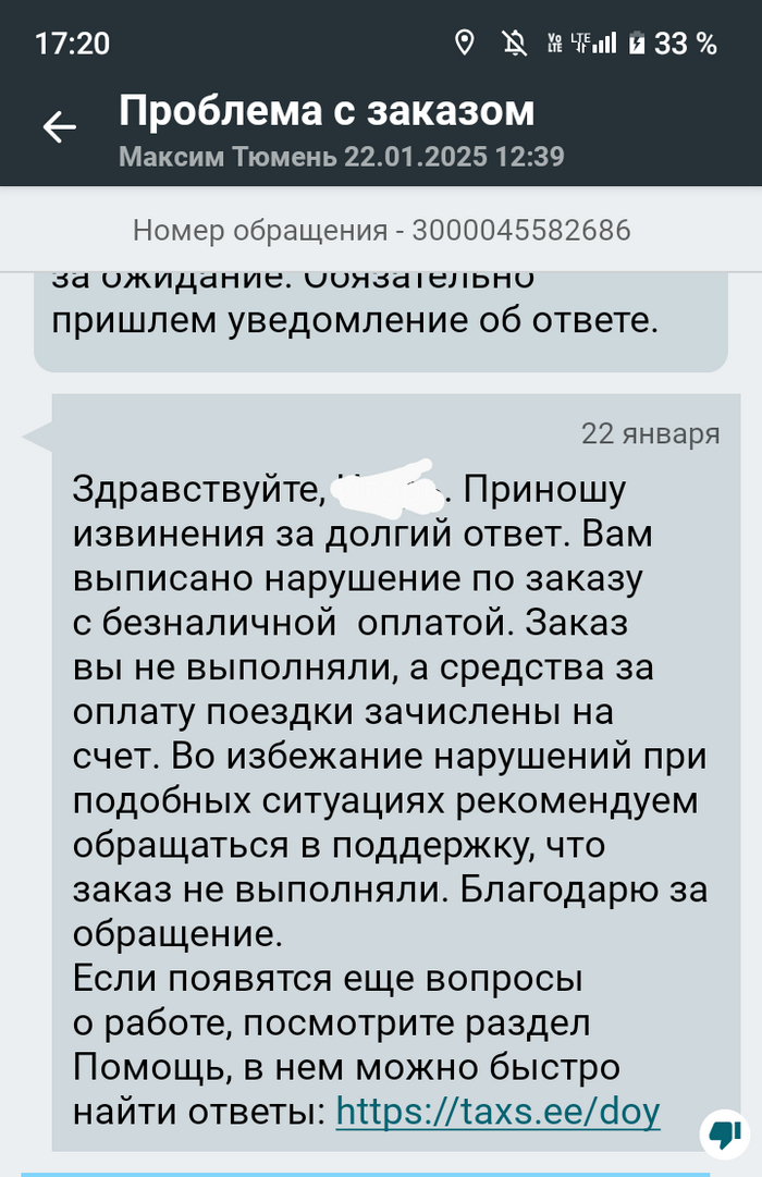 В общем, пришёл заказ с Яши, я хотел принять и тут же прилетает от максима. Который я случайно принимаю и даже отметился "На месте". Пытаюсь отменить заказ сразу же, а программа максима не даёт водителю отменить. Только через поддержку.