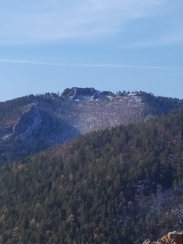На верху и северных склонах уже лежит снег.