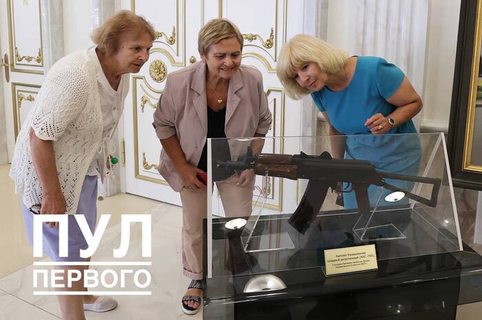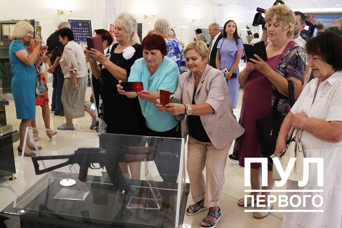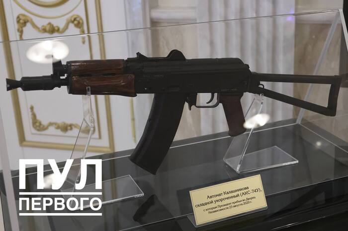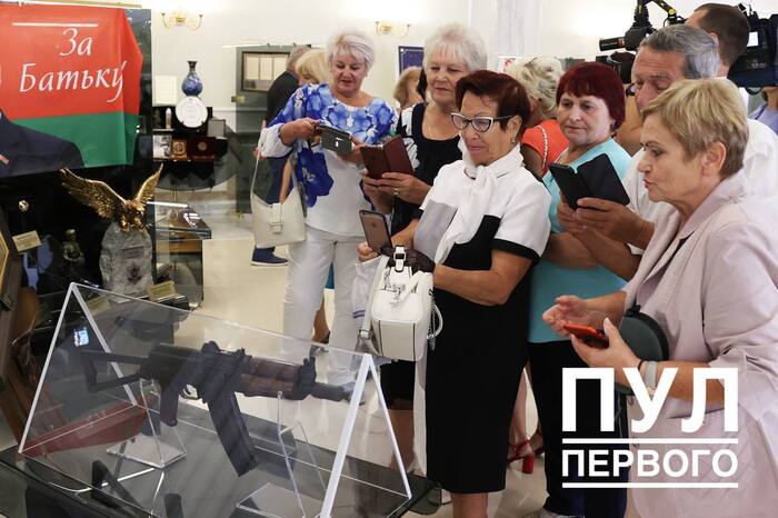Тот самый автомат, с которым Лукашенко вышел в августе 2020 - один из самых популярных экспонатов музея во Дворце Независимости.
