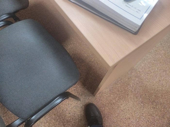 Не знаю, чем думали те, кто планировал расстановку мебели в кабинете, но вот так выглядит помещение, где электромонтеры проводят утренние и вечерние собрания по работе. =)